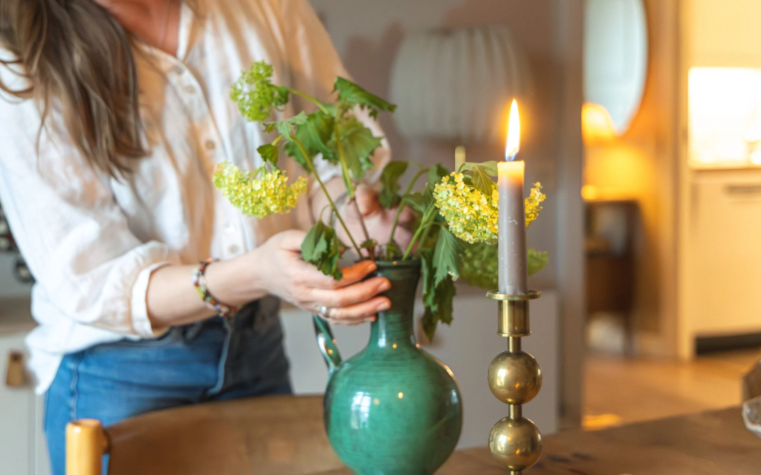 Byt textilier och flytta om detaljer mellan säsongerna. En tung yllepläd och varmare lampskärmar till vintern; lättare linnetyger och mer dagsljus till sommaren. Möblerna är permanenta — stämningen är dynamisk.